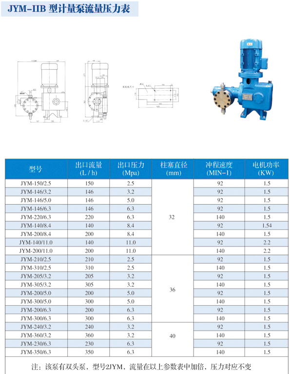 計(jì)量泵 >> JYM-ⅡB型計(jì)量泵 最大流量為700L/H,最高耐壓11Mpa