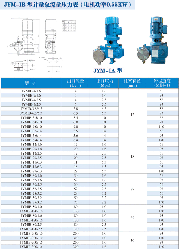 計(jì)量泵 >> JYM-ⅠA型液壓隔膜計(jì)量泵 最大流量為75L/H,最高耐壓6.3Mpa